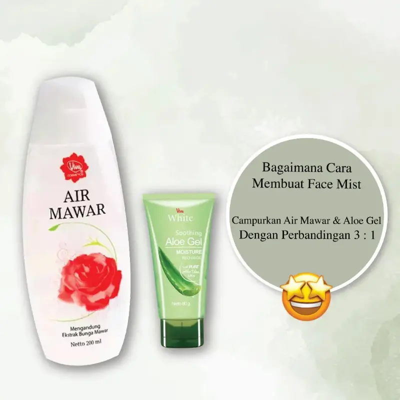 Cara bikinnya gampang banget lho! Kalian tinggal campurkan Viva Air Mawar dan Viva White Soothing Aloe Gel dengan perbandingan 3:1. Lalu kocok sebentar dan yapsss…… face mist ready untuk kalian gunakan. Let’s try!